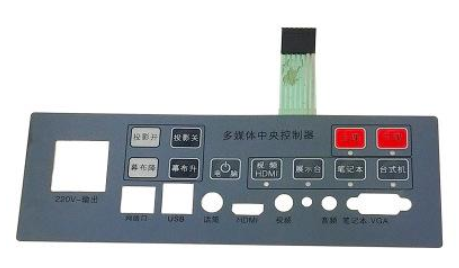 薄膜開關(guān)是一種本身帶線路的按鍵,通常最上層是由PET或PC等等資料組成的有文字或圖畫的面板