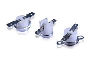 帶外殼的雙金屬片溫控器;單刀單擲,工作于阻性負(fù)載下。廣泛應(yīng)用于咖啡壺、飲水機(jī)、多士爐、微波爐、電暖器、便攜式冰箱等多種小型家電中作為溫度控制或溫度保護(hù)之用,是加熱類(lèi)小家電中的重要器件。