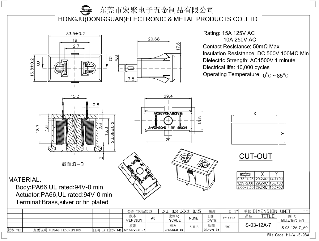 東莞市宏聚電子五金制品有限公司成立于2005年,公司主要生產(chǎn)和研發(fā)船型開關(guān)、帶燈輕觸開關(guān)、按鍵開關(guān)保險(xiǎn)絲管座、電源插座等電子開關(guān)類產(chǎn)品。公司所有出口開關(guān)產(chǎn)品均通過 UL、CE、CQC、CCC 等多國(guó)安規(guī)認(rèn)證。我公司己實(shí)施 ISO9001:2008管理模式并且取得相關(guān)證書,所有產(chǎn)品均有作過SGS環(huán)保檢測(cè)。